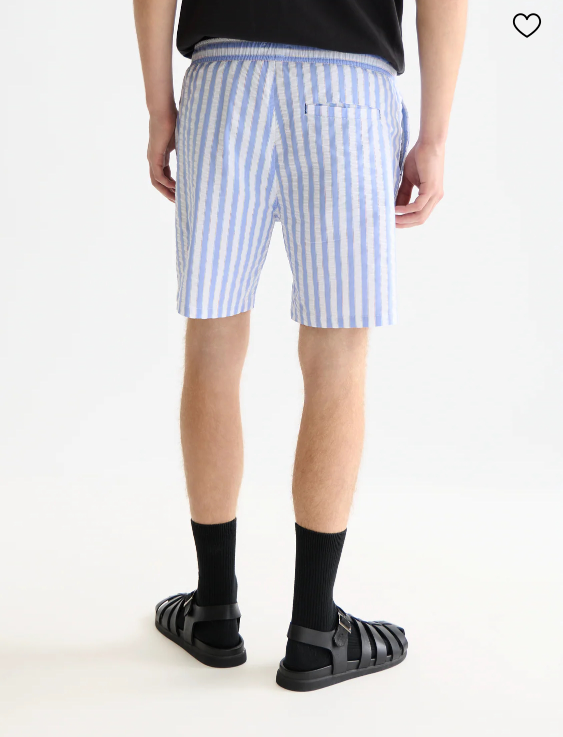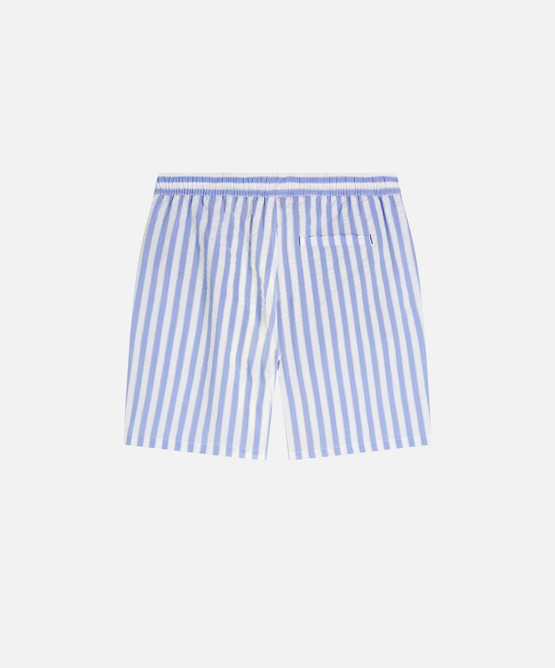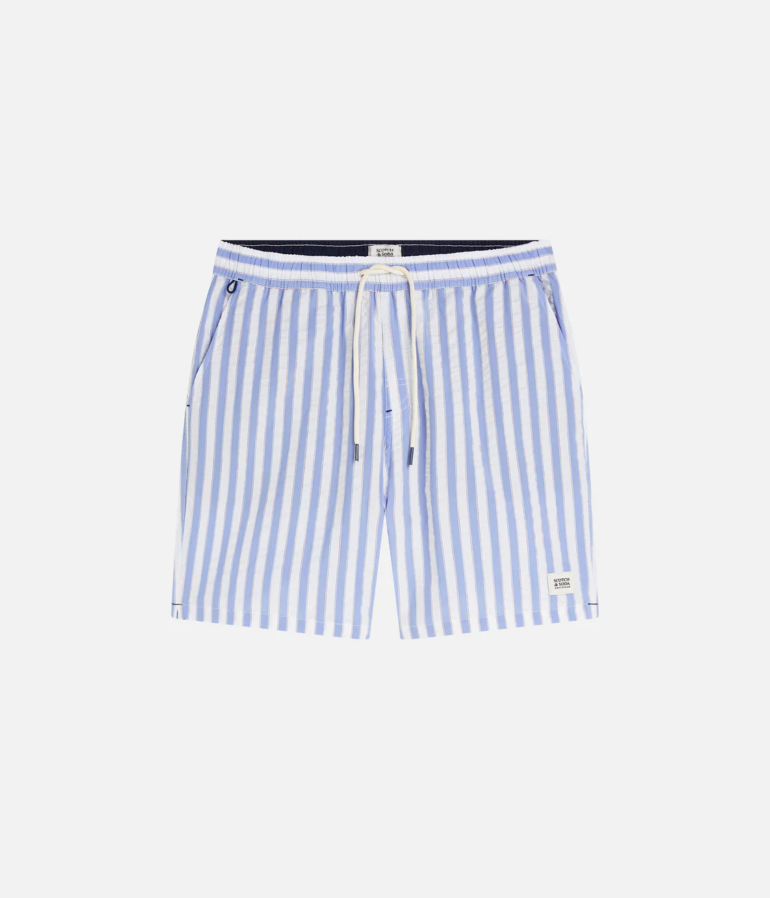 Striped mid-length swim shorts with a crisp, easy feel – perfect for warm-weather wear.