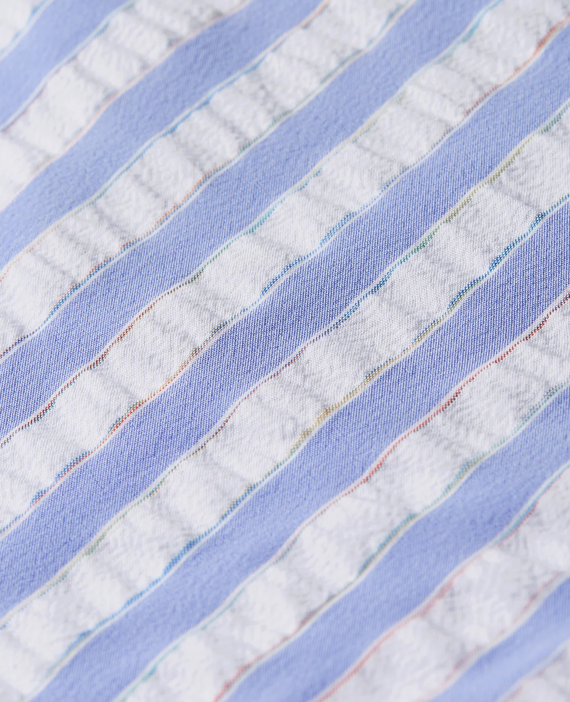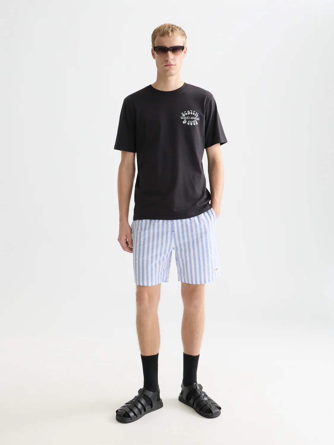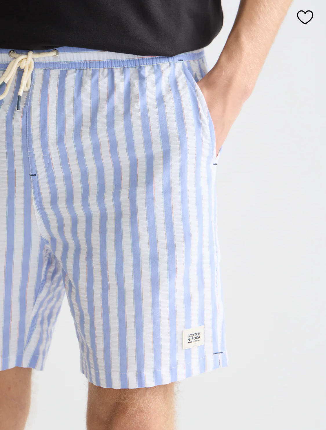 Striped mid-length swim shorts with a crisp, easy feel – perfect for warm-weather wear.