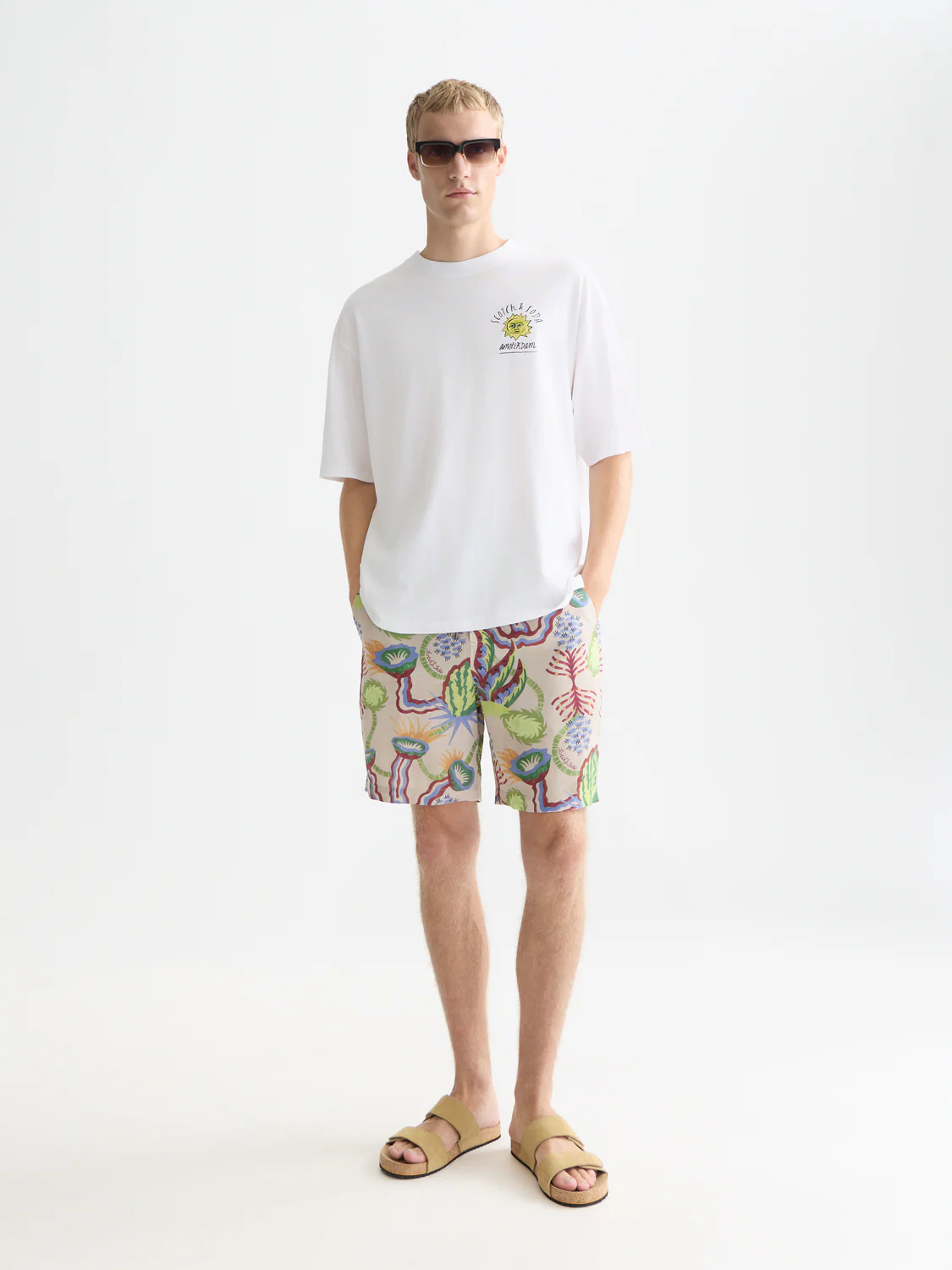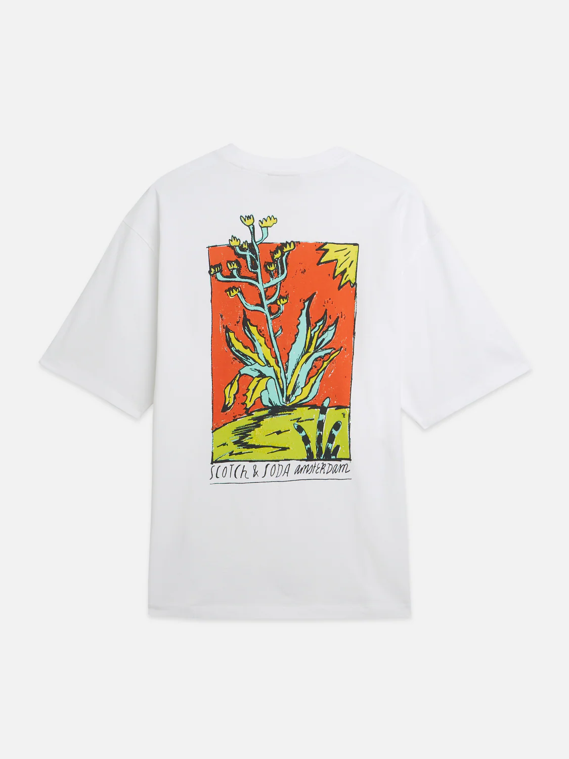 A loose-fit T-shirt with playful chest and back graphics, giving it a laid-back, modern feel.