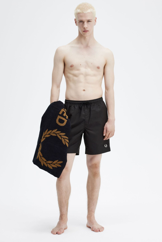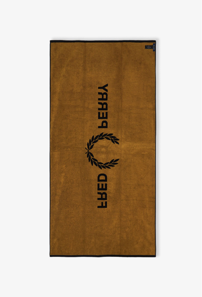 A large beach size towel in pure cotton, with oversized Fred Perry branding.