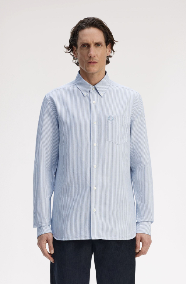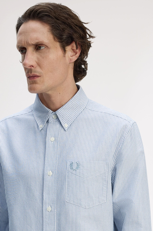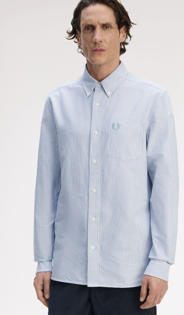 Oxford cotton fabric / Regular fit / Button down collar / Chest pocket / Laurel Wreath embroidered logo on the left hand chest
