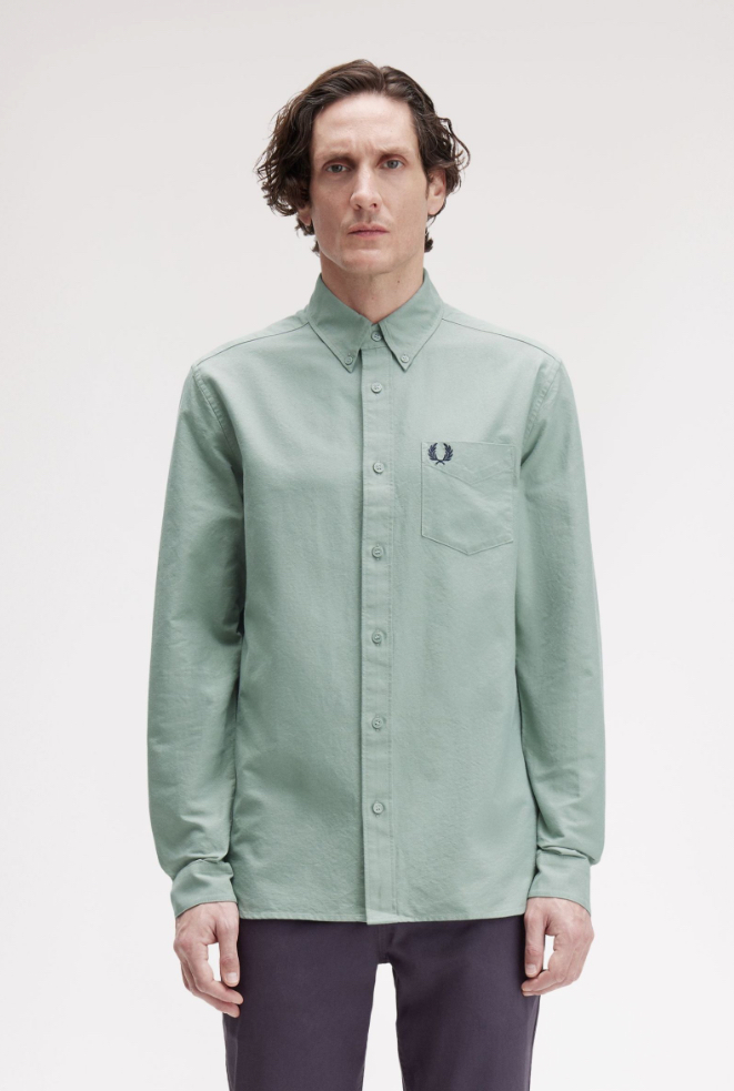 Ourbutton-down shirt channel the formal styles of continental Europe, which were spotted and adopted by sharp-dressing British Mods. Made using typical Fred Perry shirting details and Oxford cotton – fabric constructed of two contrasting yarns, basically the gold standard for formal shirts. Finished with a button-down collar, button-up cuffs, and a flat knit gusset with our signature tipping on the hem – a subtle mark of the brand, instantly recognisable by those who know.